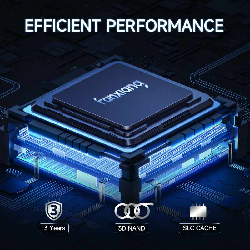 With HMB memory buffer technology and SLC Cache intelligent cache, a FTL (flash translation layer) is built with the high-speed reading and writing of the host's memory (Memory), so that the SSD can play an excellent read and write performance. Significantly improve the speed of computer startup, multitasking, game resources and graphics loading, etc.