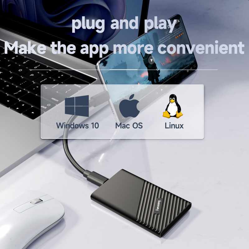 The portable external hard drive is not only compatible with traditional laptops and desktop computers, but also compatible with smart TVs, game consoles PS5/PS4 (Pro), Xbox series, Mac, Win 7 and above, and some Android smartphones with OTG function.