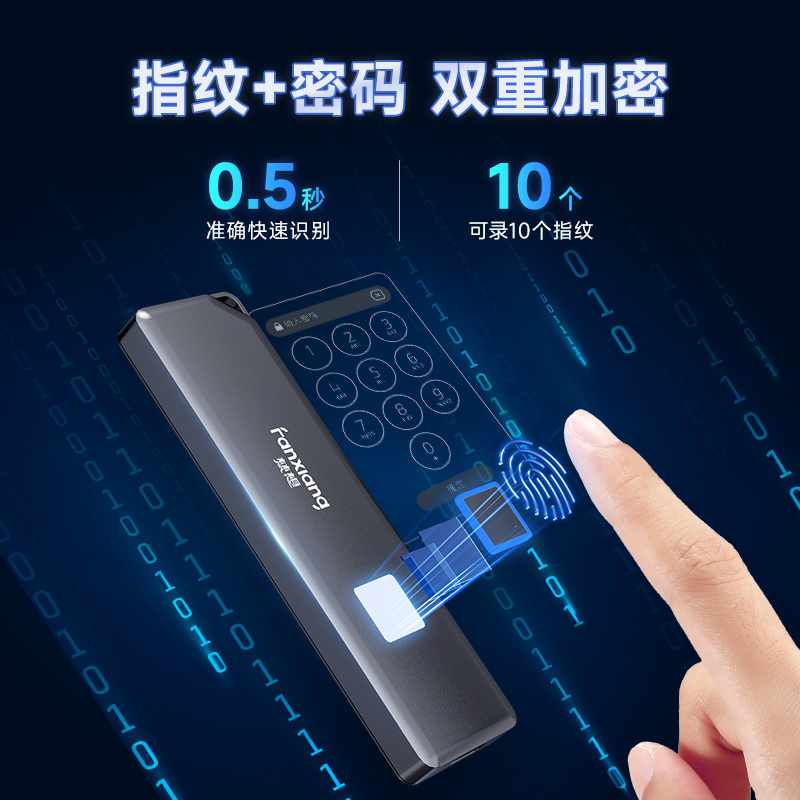 The new generation of mobile hard disk solid-state chip technology, faster and safer transmission. In order to protect your data security, we have launched an advanced encrypted mobile solid-state hard disk, using the world's most recognized and secure AES256 encryption technology. It not only has powerful encryption and fingerprint recognition functions, but also has high-speed transmission, portable design and durable stability. Whether you are a business person, student or creative worker, it can meet your needs and improve your work efficiency and quality of life.
