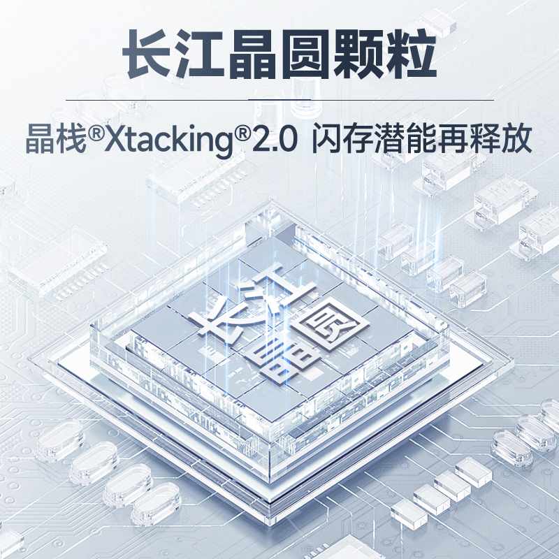 Adopting Changjiang's third-generation TLC three-dimensional flash wafer particles. Jingzhan®@[email protected] can realize the processing of peripheral circuits and storage units on two independent wafers, so that NAND can obtain higher I/0 interface speed (single flash chip interface speed up to 1600MT/s).