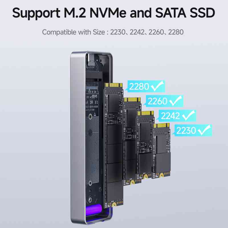 Support NVMe/SATA two-protocol solid-state hard disk, more compatible, meet a variety of needs. Adopt the latest USB3.2 Gen2 10Gbps technology, backward compatible with USB3.2 and USB3.1, ensure compatibility with a variety of modern computing devices, no need to worry about device access problems, and a data cable is also included.